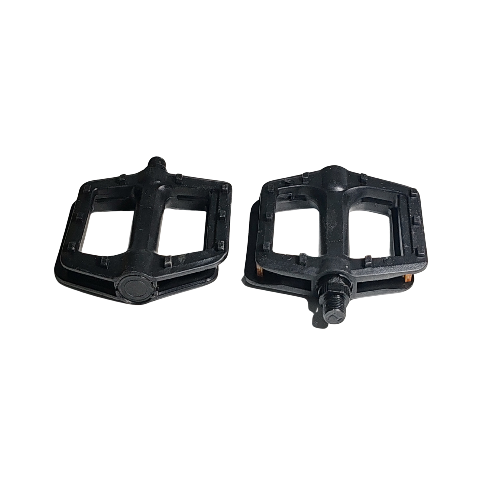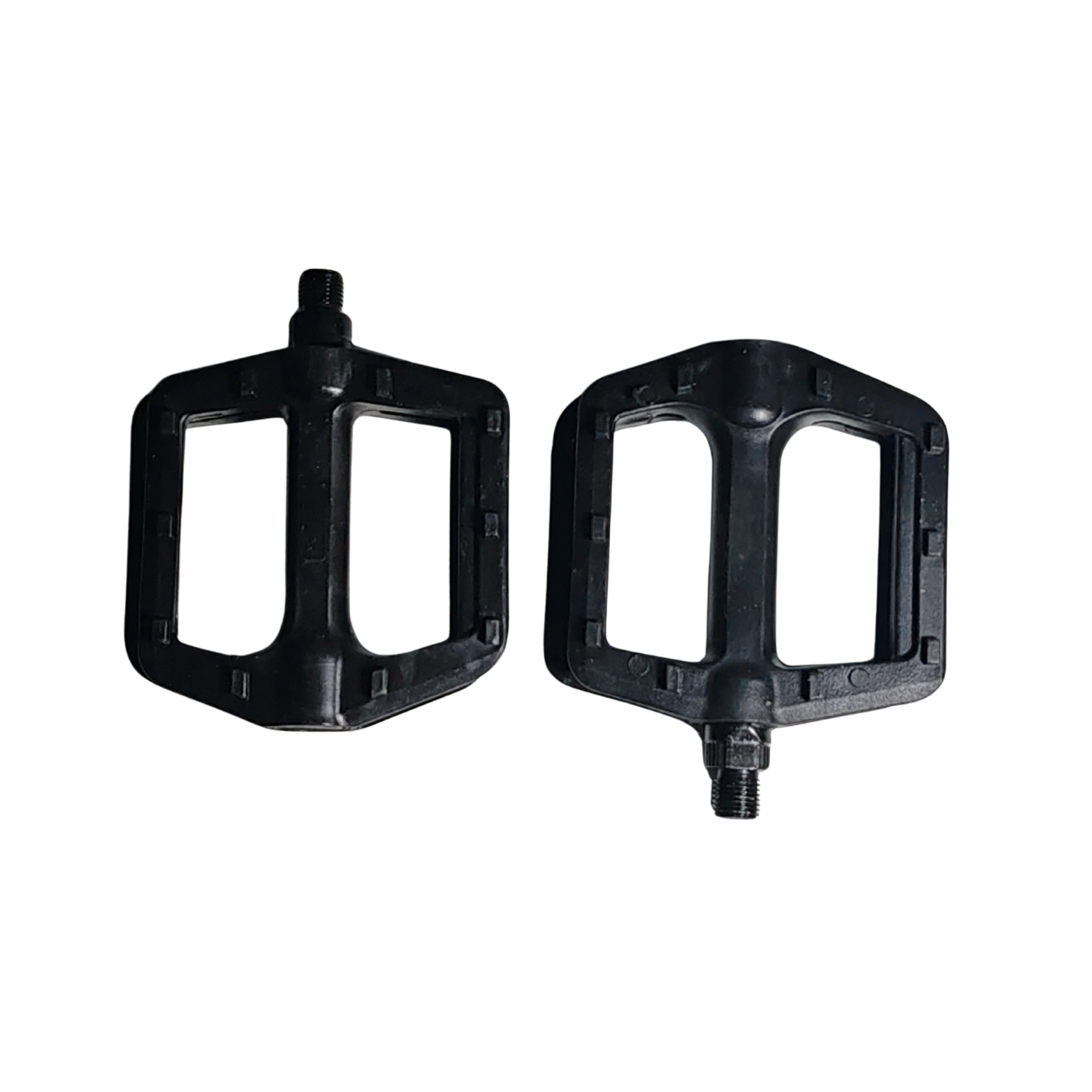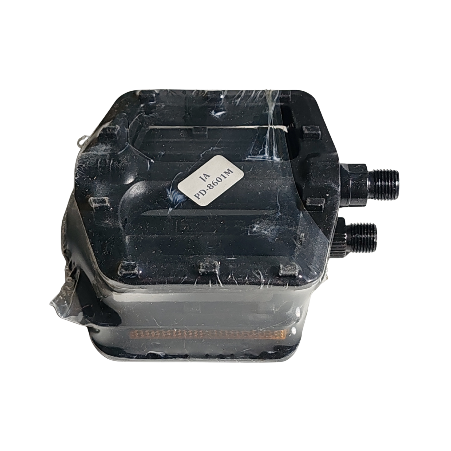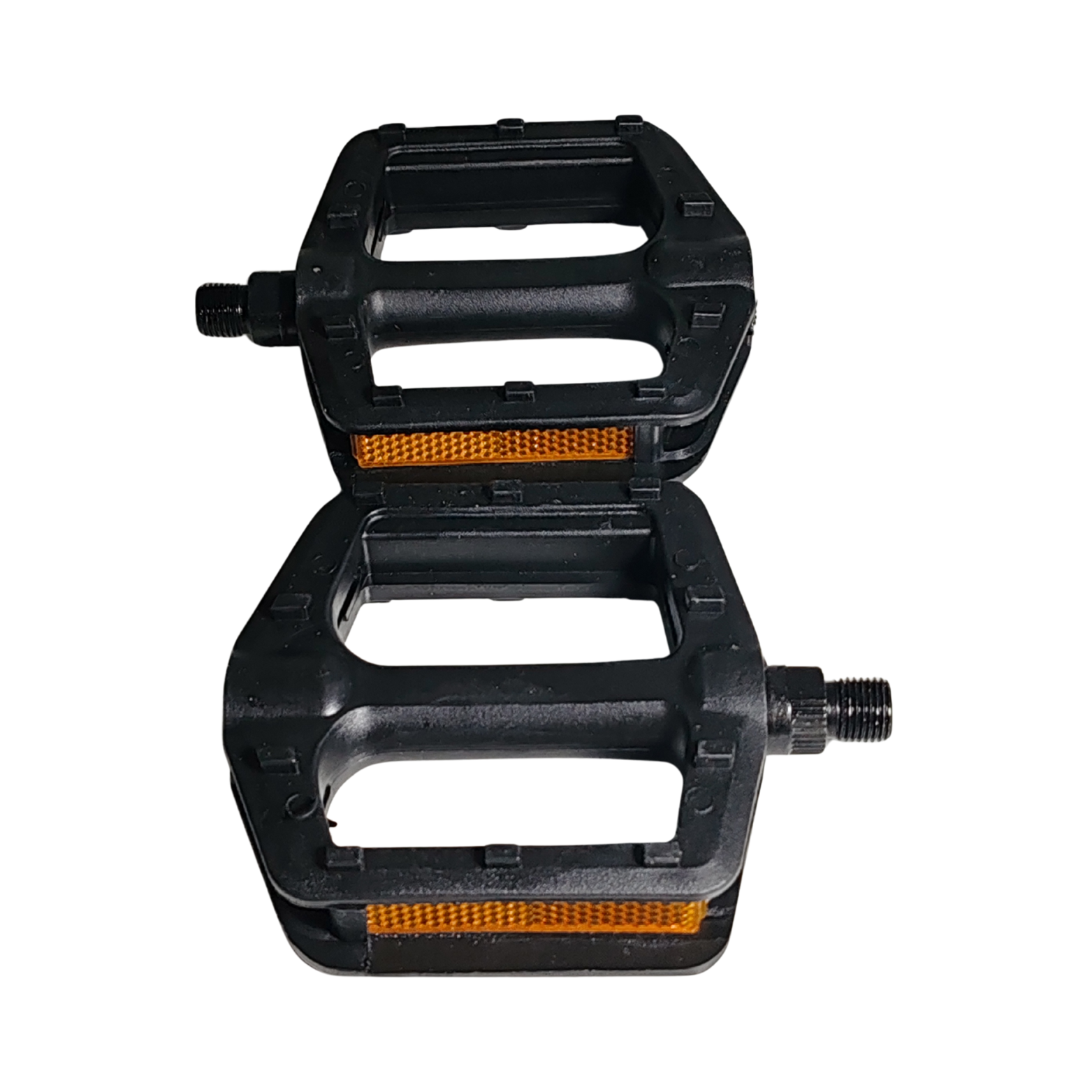Pedal de bicicleta, 2 piezas, plástico negro con franjas reflectarías.