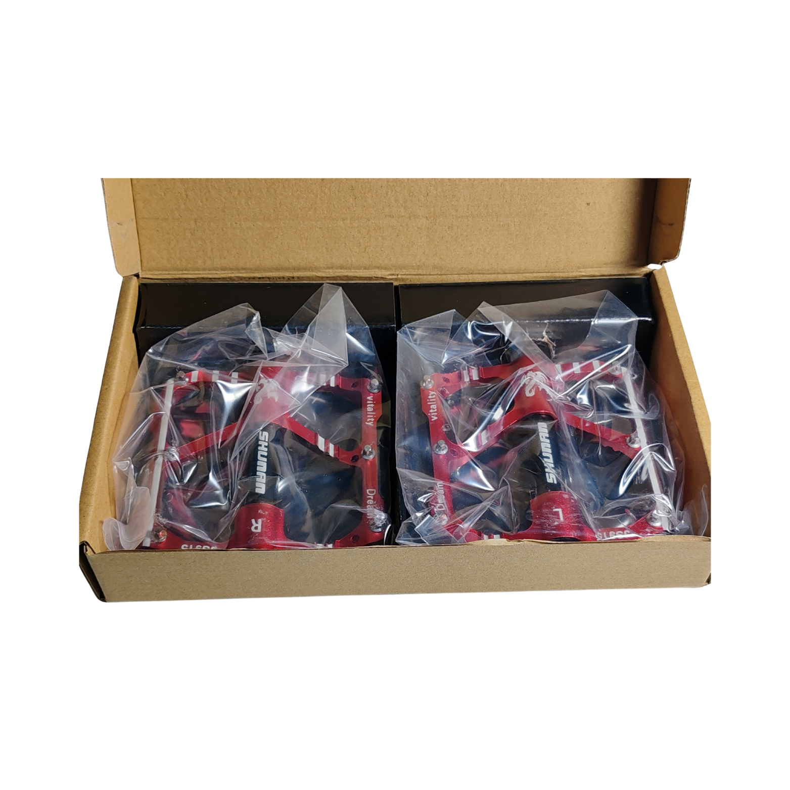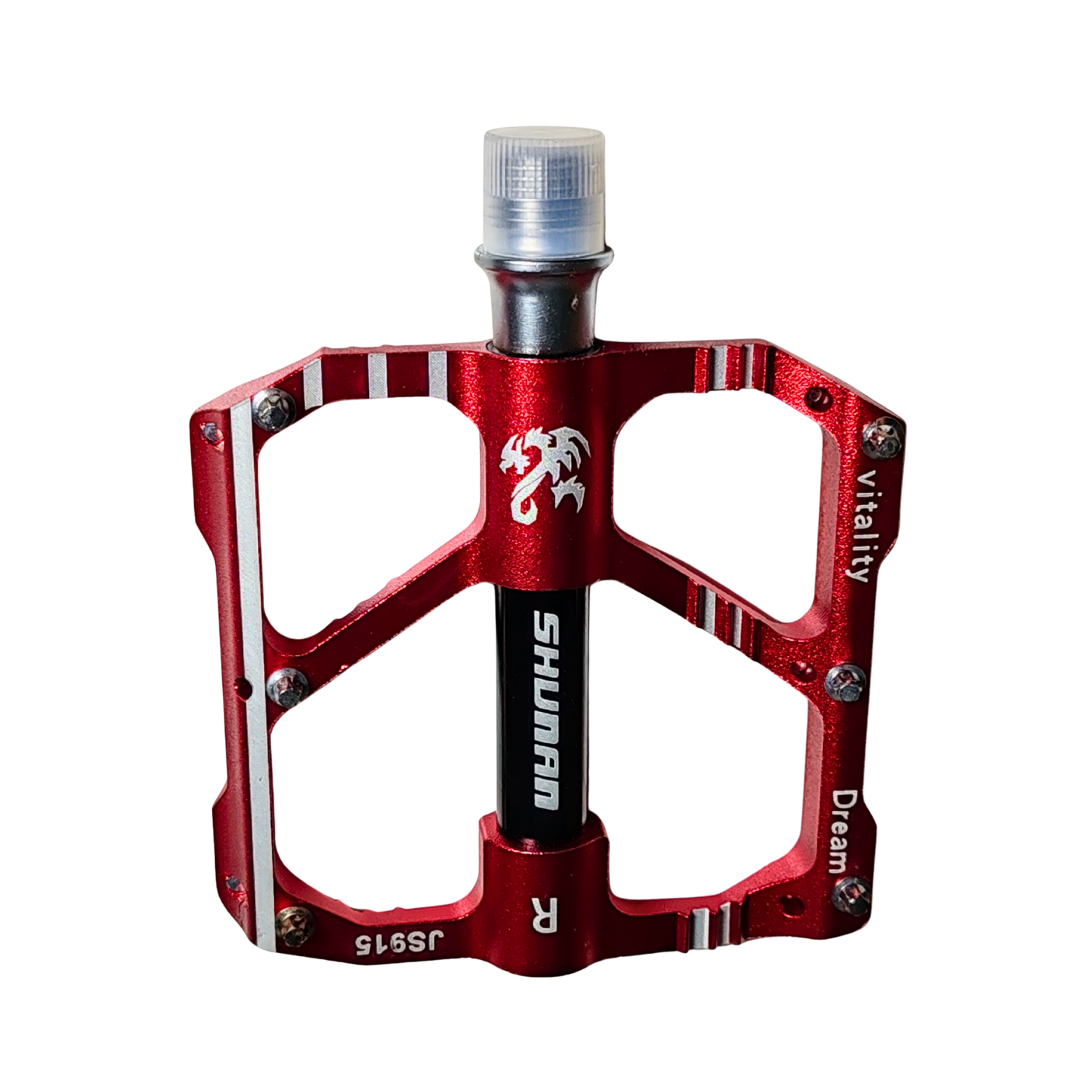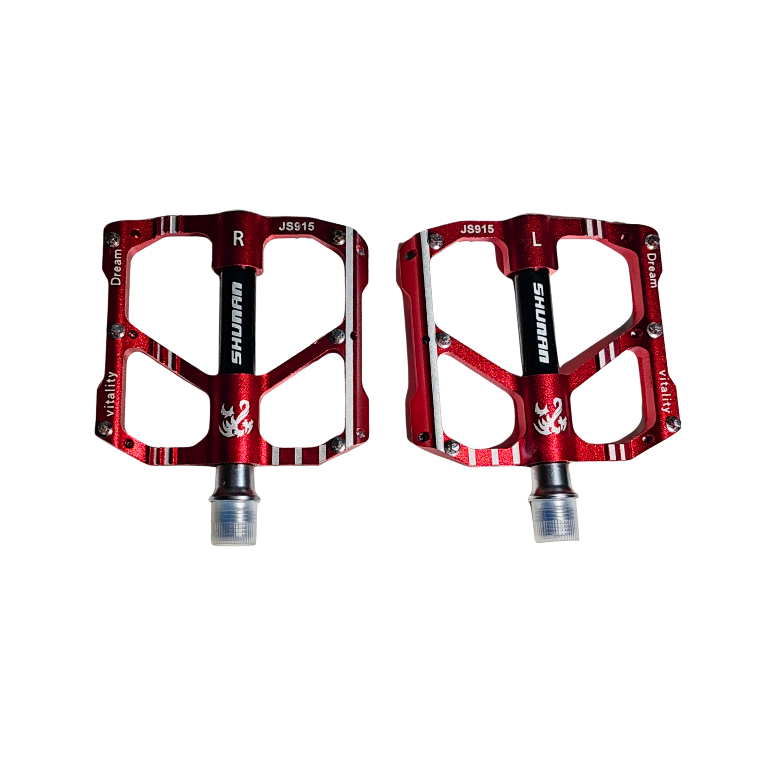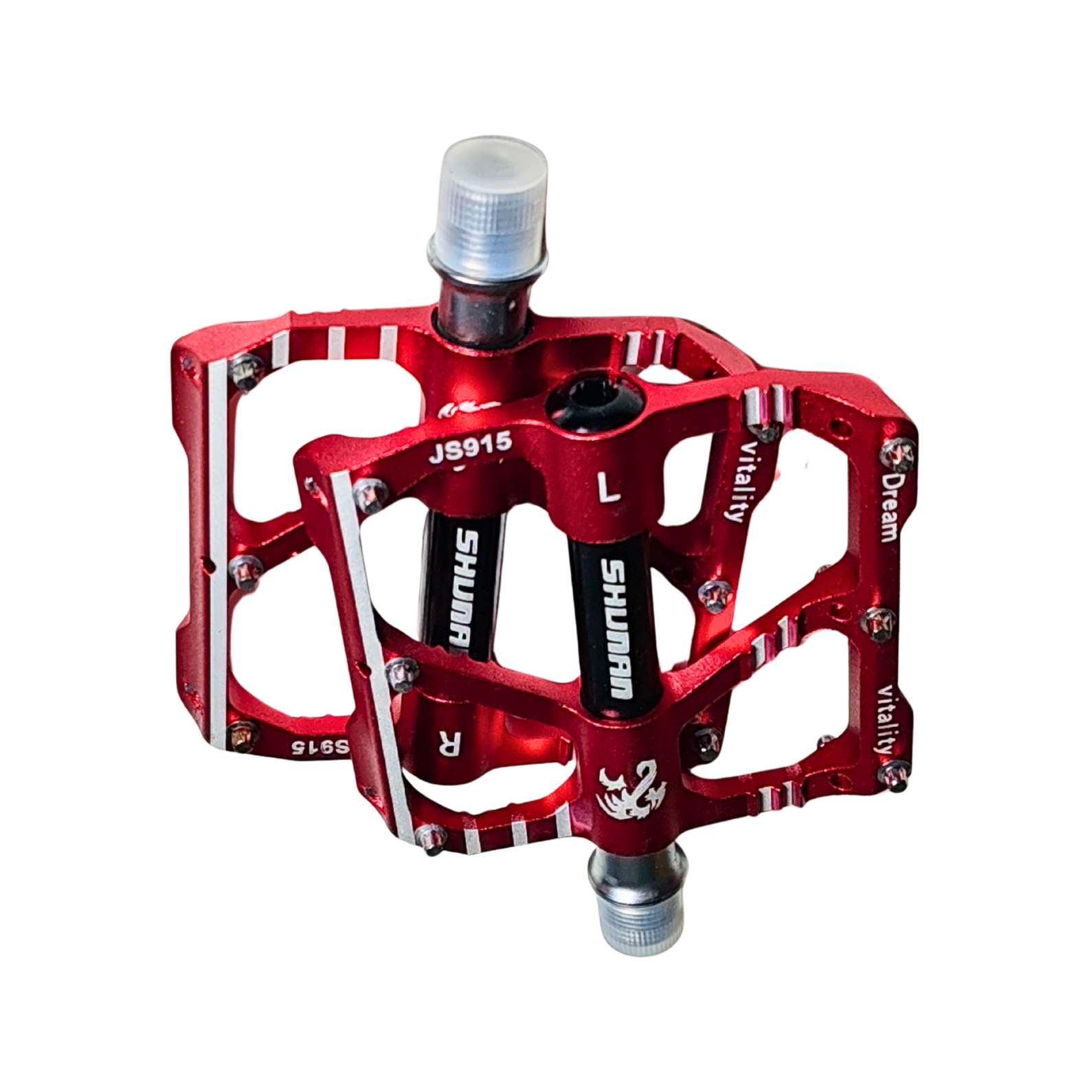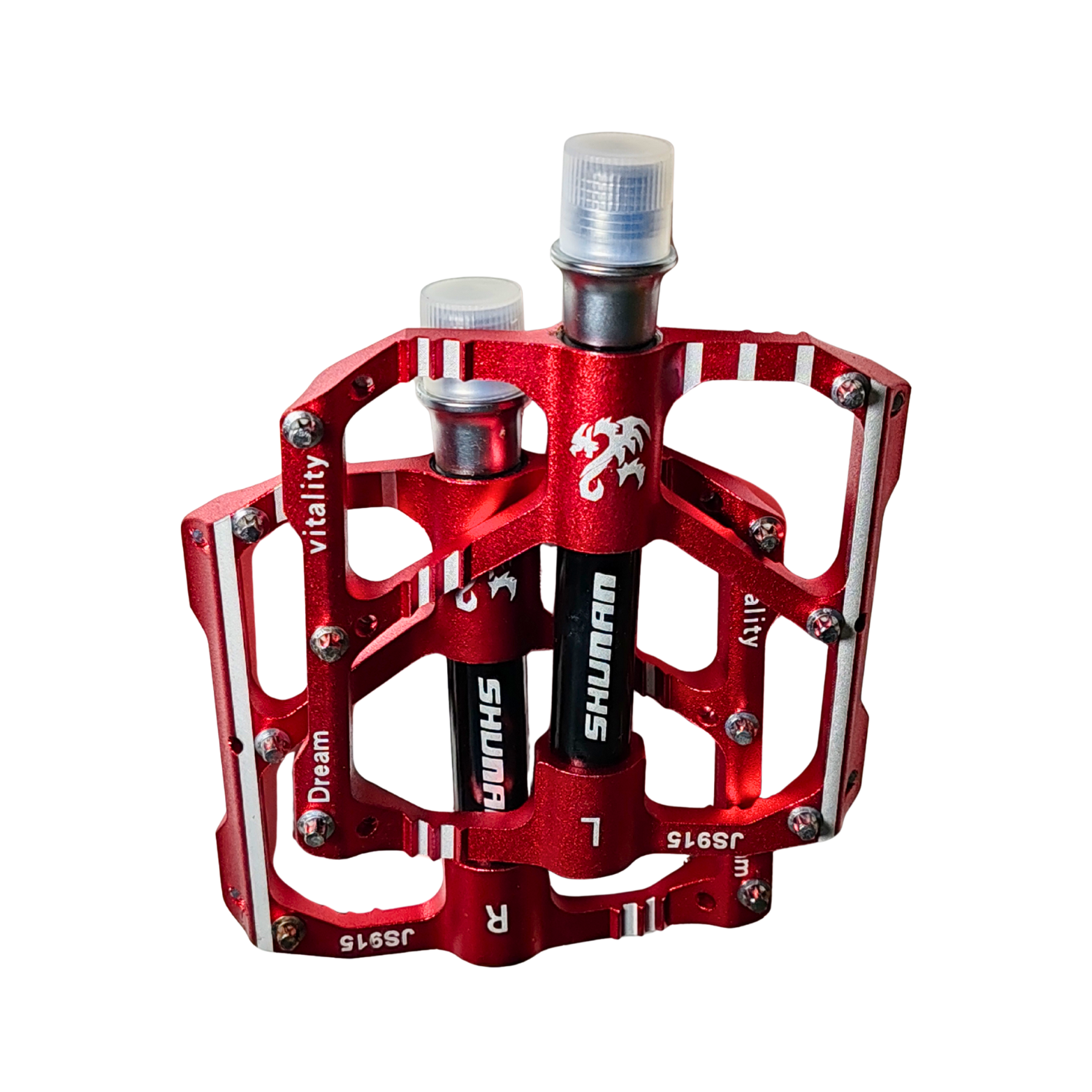Pedal de bicicleta, 2 piezas, de fierro metálico rojo con negro.